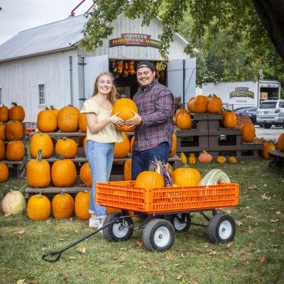 At Garver Family Farm Market, you can choose your pumpkins from inside their massive farm market, as well as other fall goodies and sweet treats!