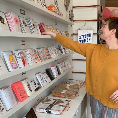 Scripted Studio owner, Carrie O’Neal, has a “deep, deep love for stationary, paper, and pretty little things.” The shop just feels so alive with color and beauty. A wall with generous strokes of reds, blues, and purples makes the whole shop feel like home. Carrie’s been a graphic designer for 17 years and wanted a space to spread out and share the power of beautifully designed cards. Her design studio is in the back and the retail shop is upfront.